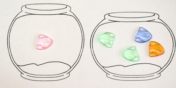 Сколько рыбок в высоком аквариуме? Посели в низкий аквариум на одну рыбку больше.