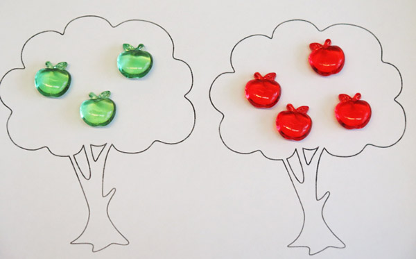 На каком дереве больше яблок? Сделай так, чтобы яблок было поровну.
