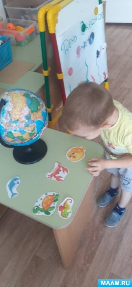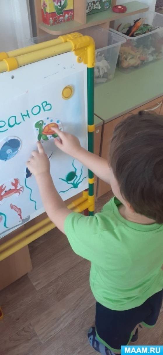 Во время тематических бесед: «Жители морей и океанов», «Необъятные морские просторы», «Всё о рыбах и морских млекопитающих», «Сокровища морей», «Морские растения» дети с восхищением рассматривали иллюстрации и фотографии, познакомились с интересными видами рыб (рыба-ёж, скат, а некоторых повторили. Играли в д. и. "Подбери картинку".