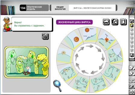 Материал интерактивного модуля представлен одновременно несколькими способами с использованием такихкомпонентов, как фотографии, иллюстрации, текст, графика, анимация, видео и т.д. Учитель на уроке может использовать как все модули данной темы, так и отдельные модули (например, только практический или контрольный), а именно то, что ему необходимо для решения образовательных задач урока. Контрольные модули - это не только тесты, но и задания в разной игровой форме.