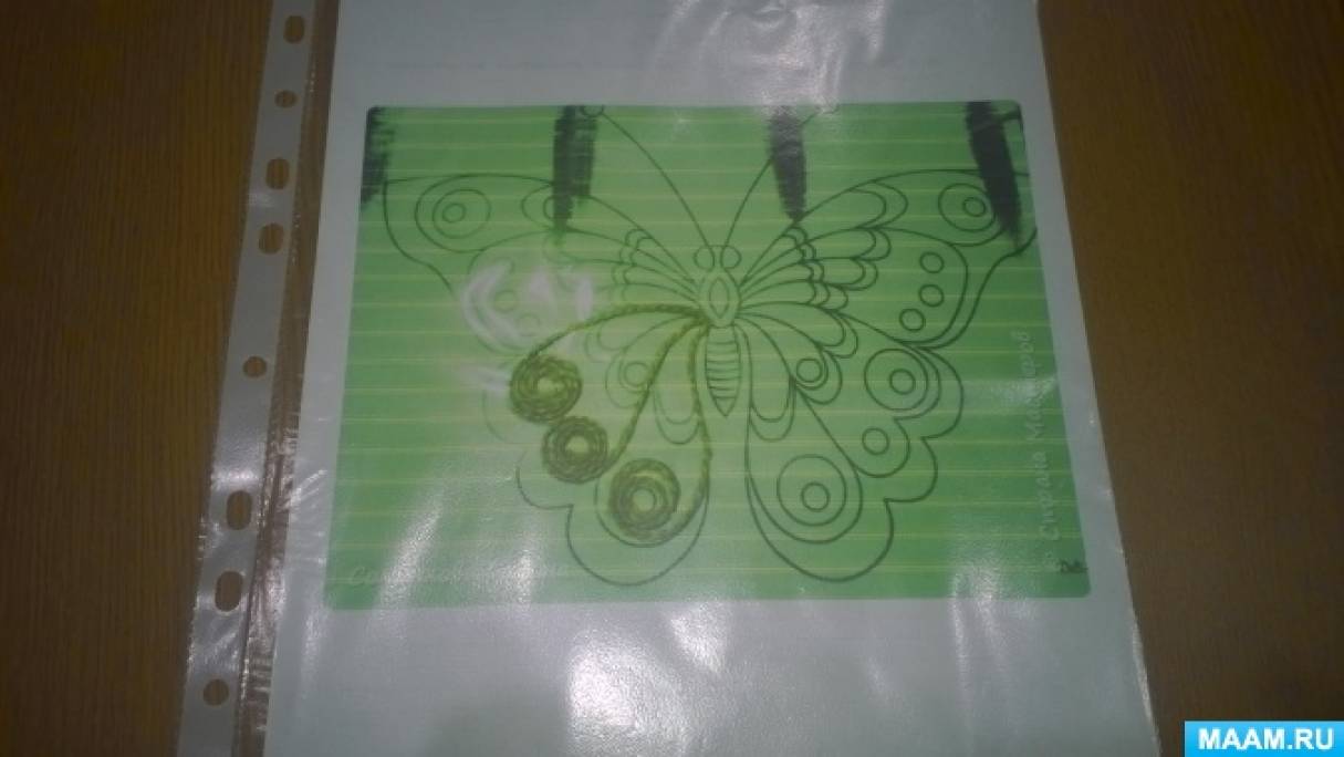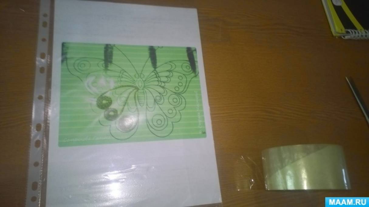3 | Рисунок с узором помещается в папку-файл. Для удобства переливаем клей в маленькие пузырьки от клея ПВА. | |