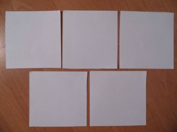 Вырезаем из цветной или белой бумаги 6 одинаковых квадратов. Размер квадратов зависит от того, насколько большим вы хотите видеть сам цветок.