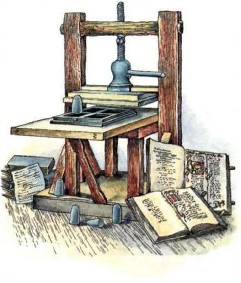 В 1445 году немец Иоганн Гутенберг изобрёл первый печатный станок, который работал интересным способом: текст выкладывали из металлических букв — литер — на особой доске, затем литеры смазывали краской, а сверху клали лист влажной бумаги. Таким образом, буквы отпечатывались и оставались на странице будущей книги. Книгопечатание быстро распространилось по средневековой Европе. За первые 50 лет в европейских городах открылось около двух тысяч типографий и было выпущено несколько миллионов книг.