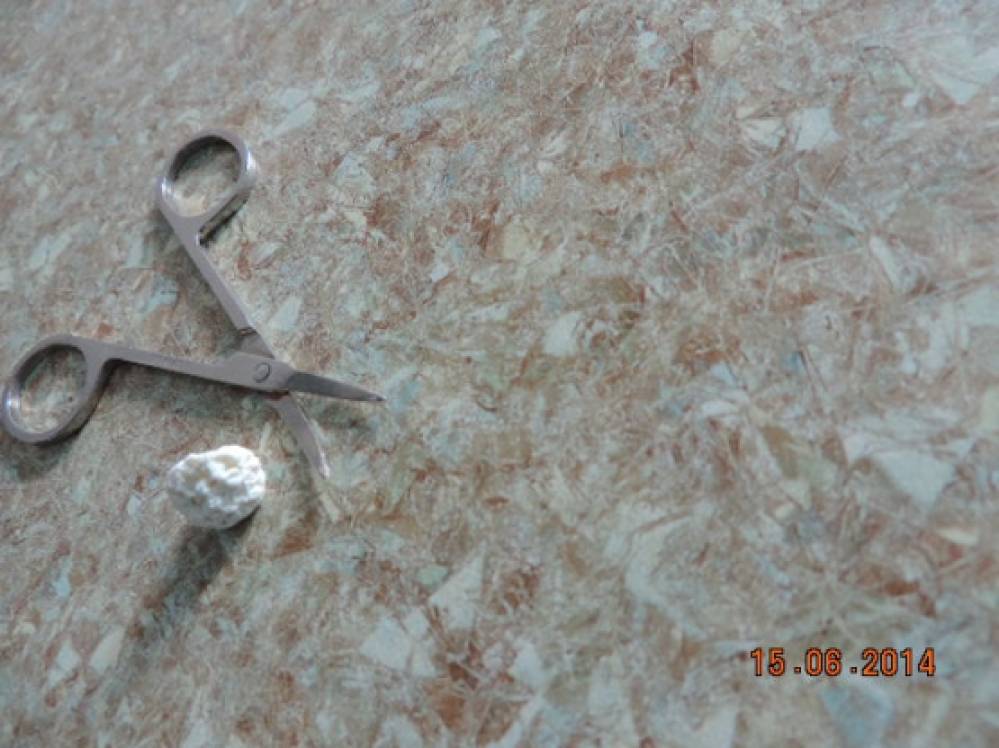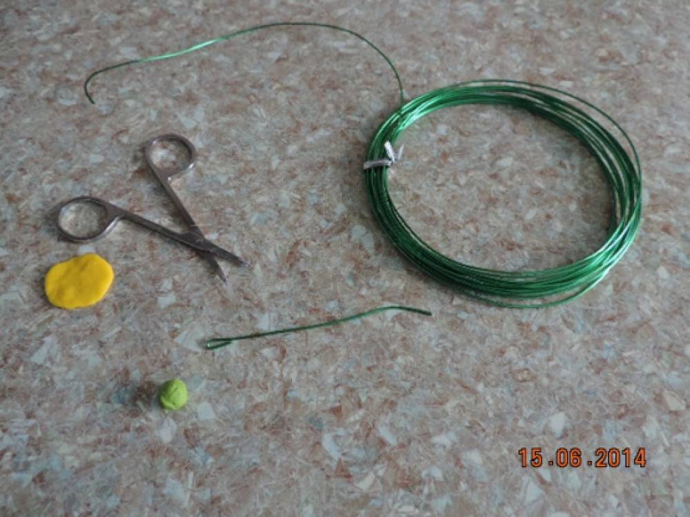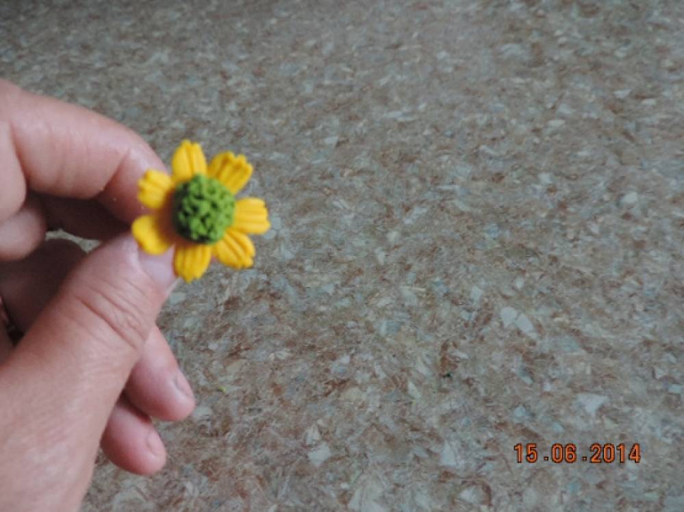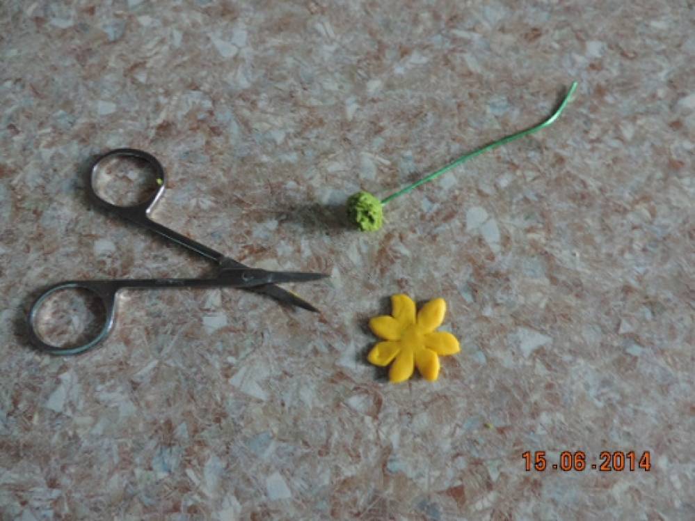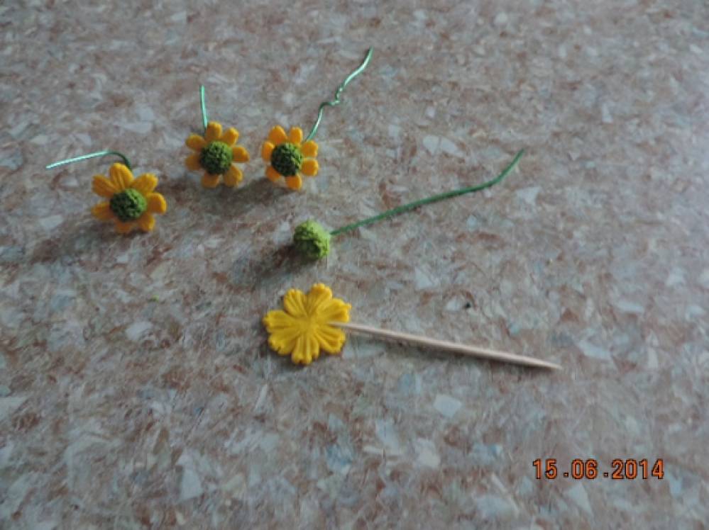 Берём зубочистки, губку и небольшой кусочек холодного фарфора, окрашенный в жёлтый цвет