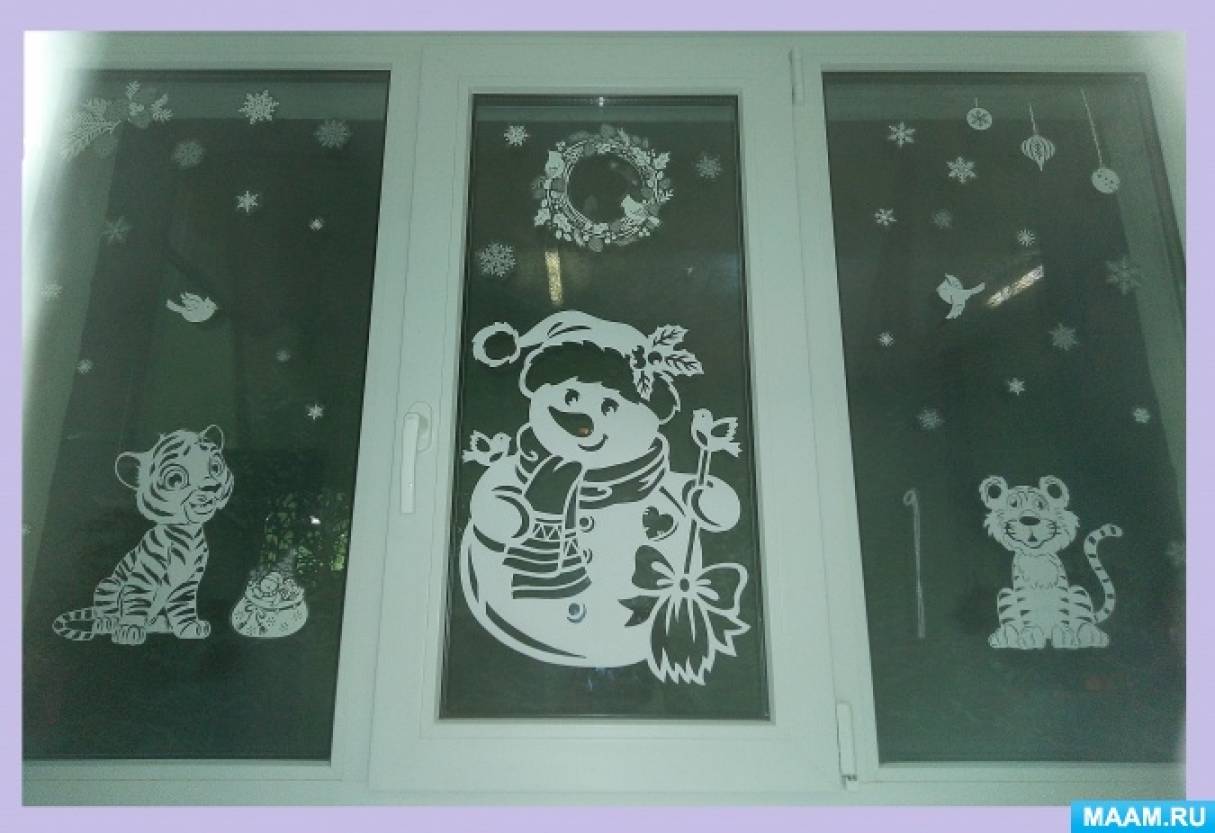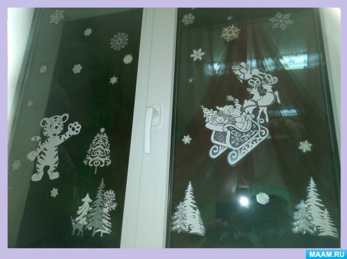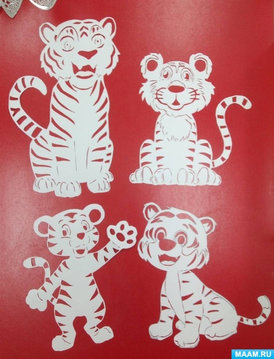 В младшей группе "Малыши -крепыши" атмосфера праздника и позитива посредством «вытынанок»создавалась воспитателями при активном участии родителей. Творческие идеи подавали воспитатели группы - родители воплощали их и подошли к этому процессу творчески: они занимались не только поиском образцов и шаблонов «вытынанок», а стремились подобрать композицию или маленький сюжет на зимнюю тематику. Наступающий год - год Тигра, и по-этому родители первым делом вырезали разных тигрят.