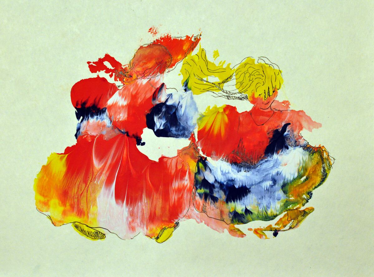 Однажды с кисточки сорвалась большая капля, упала на бумагу и растеклась.