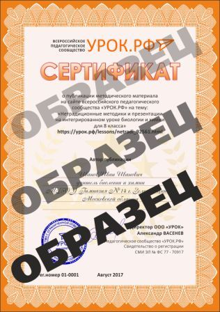 Сертификат о публикации от «УРОК.РФ» – это электронный документ, подтверждающий факт публикации материала на сайте педагогического сообщества урок.рф, зарегистрированного Роскомнадзором сетевого издания.